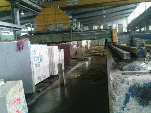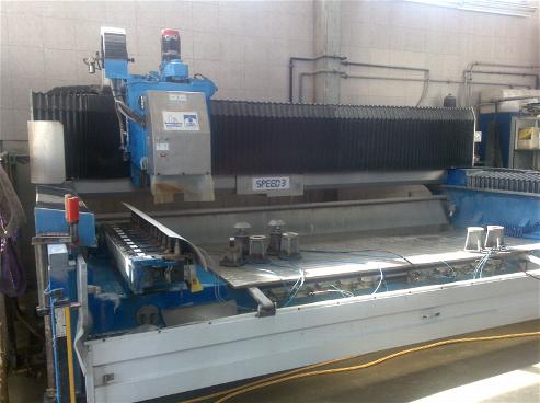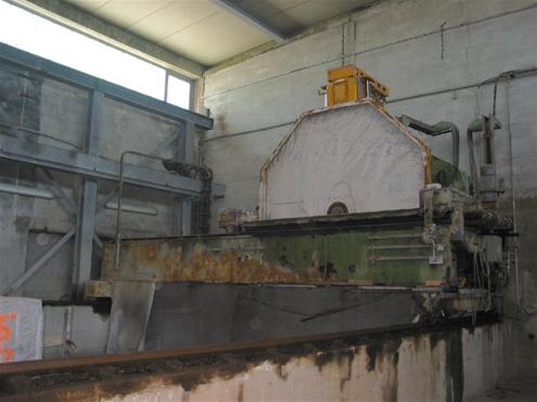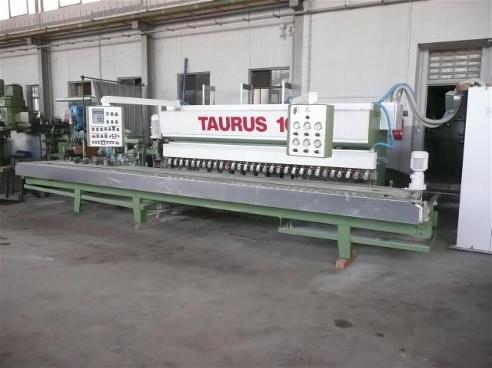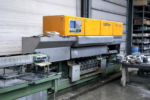 8. Löffler FS150, Schleif- und Polierautomat für Marmor und Granit, Rohplattenerkennung über Abtastrahmen, Schleiflänge ca. 4000 mm, Schleifbreite ca. 1800 mm, Gleislänge 5000 mm, Hauptmotor 11 kW, Schleifdruck hydraulisch, generell guter Zustand.